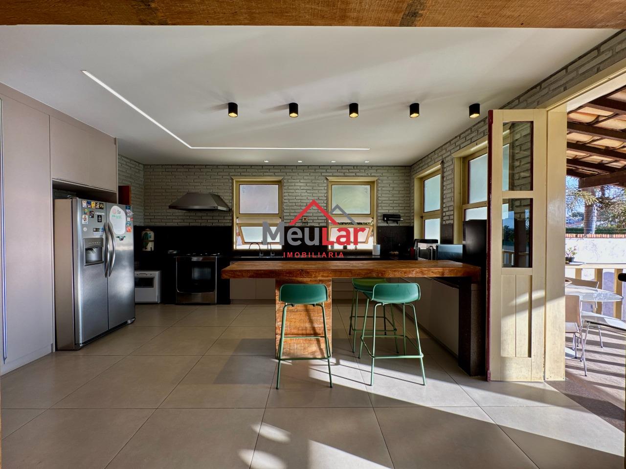Sala de TV, sala de jantar e cozinha integradas, favorecendo a interação e a praticidade no dia a dia